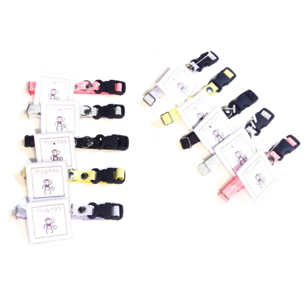 Este collar elastizado regulable fue especialmente pensado para gatitos. Liviano, cómodo y con un toque brillante, es ideal para que tu mascota esté identificada y protegida, sin renunciar al confort. Gracias a su diseño, se adapta fácilmente al cuello del gato sin generar molestias.